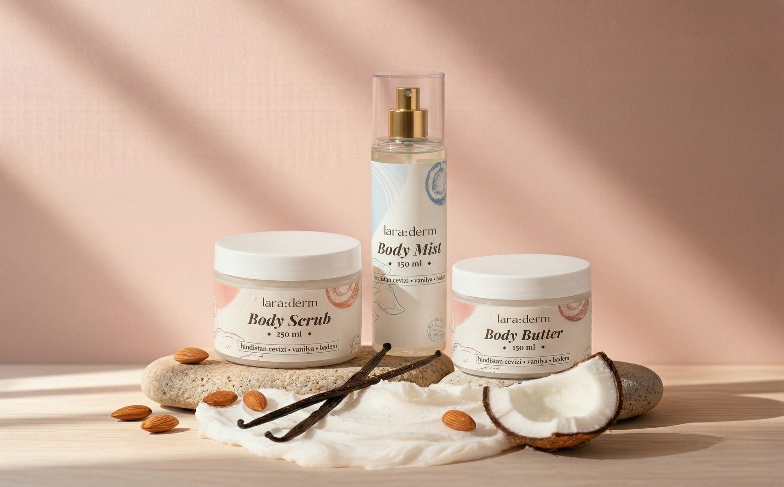 Günlük koşturmacanın içinde kendine ayırdığın o kısa mola, aslında en değerli yatırımın. lara:derm olarak, vücut bakımını sıradan bir rutin olmaktan çıkarıp duyusal bir ritüele dönüştürüyoruz. Premium içeriklerle hazırlanan body scrub, body butter ve vücut spreyi ile cildine hak ettiği ışıltıyı veriyoruz. Egzotik Hindistan cevizi, sıcak vanilya ve tatlı bademin büyüleyici uyumuyla harmanlanan imza kokularımızla tanışın; çünkü her cilt şımartılmayı hak eder.